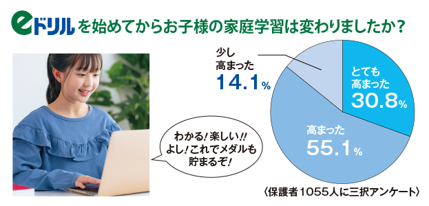 eドリルは、文部科学省学習指導要領に準拠し、教科書ページ対応機能を持つオンライン家庭学習コンテンツで、主体的に学べる優れた完全個別対応の学習法として高い評価を得ています。使いやすく、時間や場所を選ばない多様な学びスタイルに対応できます。戻り学習や先取り学習等の機能や、ひとつのテーマを学年を越えて予習・復習できるテーマ学習機能もあるオンライン家庭学習コンテンツです。