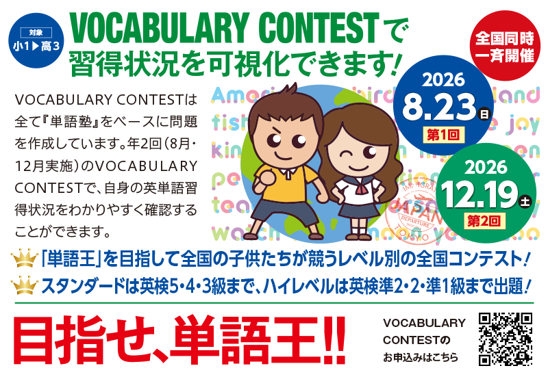 英語の「語彙力」を無学年制で競い合うオンリー・ワンの全国コンテスト!